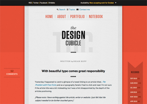Nhà thiết kế trang web này đã làm việc rất tốt khi kết hợp các kiểu chữ serif, sans-serif, script , các vùng được phân chia rất rõ ràng. Thật là một công việc không dễ dàng. Chất liệu của trang web này cũng là sự khác biệt hiếm gặp.