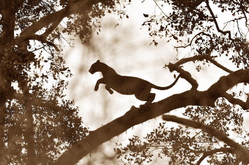 Công viên quốc gia tại Sri Lanka là nơi trú ẩn của nhiều con báo đốm. Người nhiếp ảnh đã canh được khoảng khắc, một chú báo phấn khích tung mình lên khỏi cành cây.