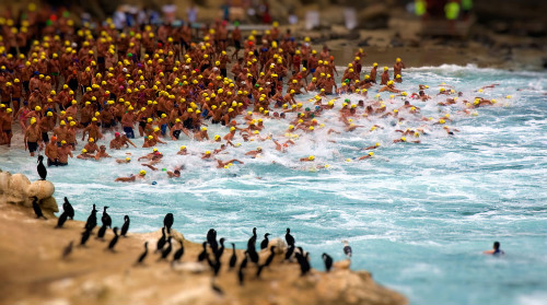Những chú chim cốc tò mò xem con người tổ chức cuộc thi bơi.
