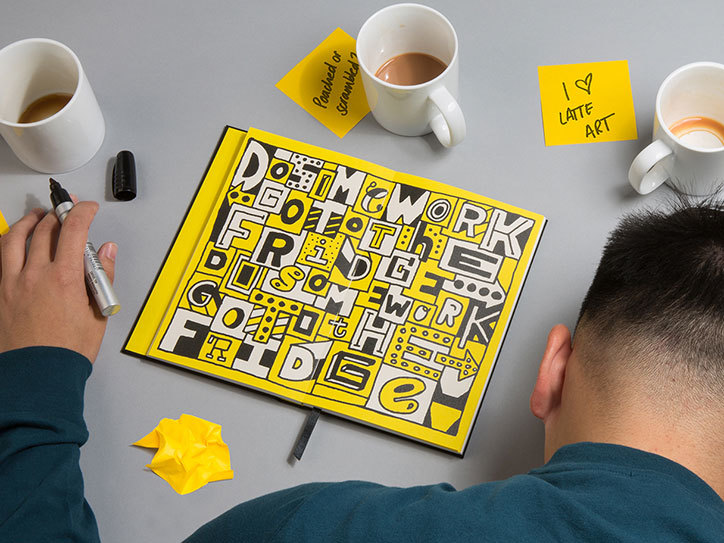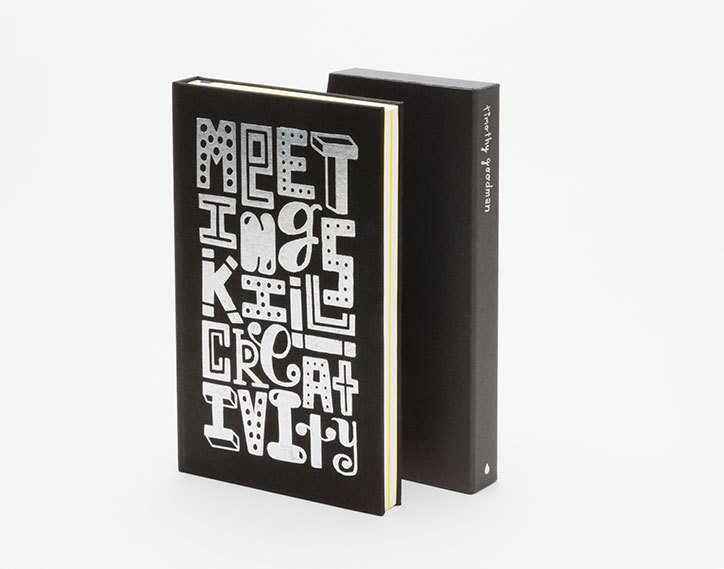 Nhà thiết kế kiêm minh họa Timothy Goodman đã hợp tác với Moo cùng tạo ra một quyển sổ tay để chống lại môi trường làm việc nhàm chán. Mang chút đùa nghịch cùng một tí mỉa mai với những đồng nghiệp, những người lúc nào cũng muốn kéo dài thời gian buổi họp, quyển sổ tay này dấy lên hồi chuông cảnh tỉnh thông qua bộ typography, “Hội họp bóp chết sáng tạo”.