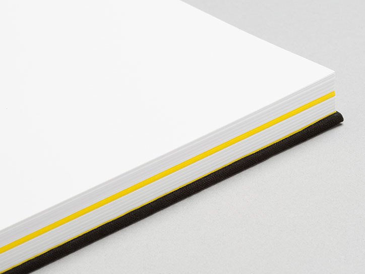 Trang bìa của quyển sổ được khoác lên mình một màu đen mờ với chữ cái màu bạc cùng với tập giấy lưu trữ Munken Kristall bên trong, không bao giờ phai mờ với những đường màu trắng sắc nét, cung cấp những miếng vải canvas để ghi chú trong buổi họp. Tác phẩm bao gồm 16 trang giấy màu vàng rực rỡ nằm ở giữa, như là một đường phân chia hay có thể coi là điểm nhấn. Việc đóng sách cho phép nó nằm phẳng, và trang bìa được bao bọc bởi chất liệu vải. Đồng thời, kèm theo là một chiếc hộp đựng để bảo vệ và lưu trữ những quyển sổ cũ đã xài.