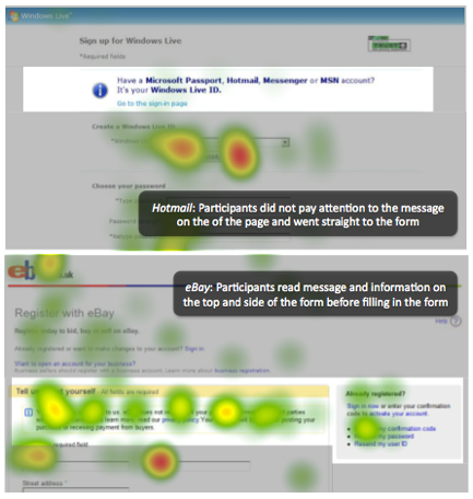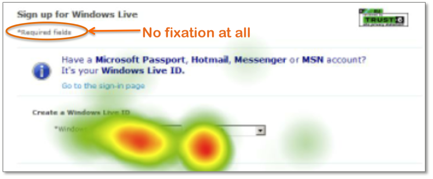 Như được trình bày trong Figure 8a, thí sinh hiếm khi nhìn vào khu vực thông tin nằm ở đầu trang Hotmail. Họ bỏ qua phần này hoàn toàn và điền thẳng vào phần form ở bên dưới.
