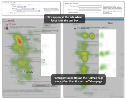 Yahoo và Hotmail đều có hướng dẫn nằm ở cuối ô. Tuy nhiên, điều thú vị ở đây là thí sinh lại đọc hướng dẫn của trang Hotmail nhiều hơn của Yahoo (so sánh giữa bản đồ nhiệt độ dành cho Yahoo và Hotmail trong Figure 10).