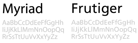 Dĩ nhiên, mặt chữ thường được đem ra để so sánh với một humanist Frutiger (humanist để chữ các chữ có đặc điểm giống như chữ viết tay) thiết kế bởi Adrian Frutiger